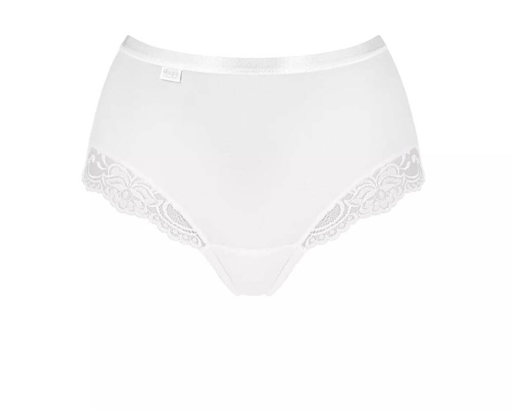 Figi damskie typu maxi. Wykonane z miękkiej bawełny i delikatnej mikrofibry. Klasyczny krój z wysokim stanem i szerszymi bokami. Wykończone koronką.