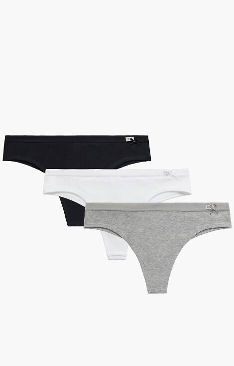 Bawełniane figi damskie typu brazyliany. Idealnie dopasowują się do sylwetki i zapewniają maksimum komfortu. Zestaw zawiera trzy sztuki.