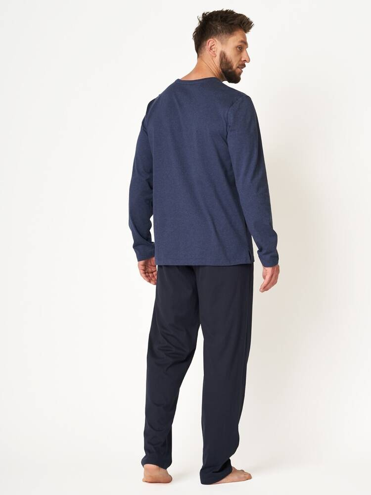 Piżama męska wykonana z wysokiej jakości miękkiej bawełny. Model o klasycznym kroju. Koszulka z długim rękawem, dekolt okrągły. Spodnie długie jednolite z wygodnymi kieszeniami. Spodoba się najbardziej wymagającym mężczyzną.