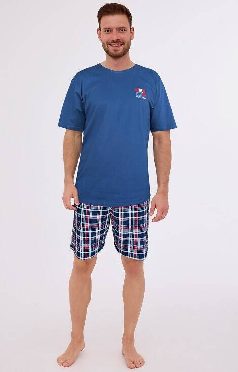Piżama męska z wysokiej jakości bawełny. Koszulka ozdobiona niewielkim nadrukiem. Spodnie krótkie, wzorzyste. W pasie gumka. Pakowana w pudełko.