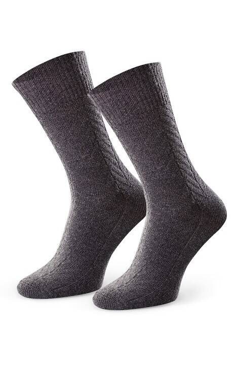 Wełniane skarpety męskie w geometrycznej strukturze. Posiadają nieuciskający ściągacz. Zapewniają uczucie ciepła.