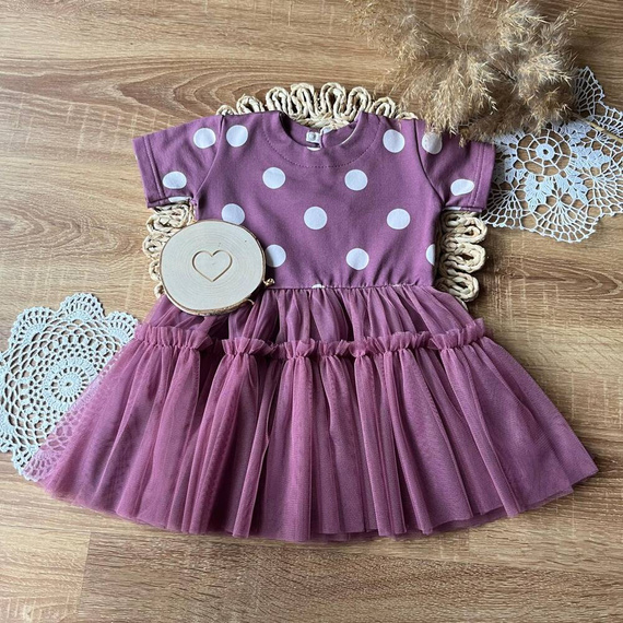 Urocza sukienka z krótkim rękawem. Wykonana z wysokiej jakości materiałów. Dół wykończony delikatnym tiulem.