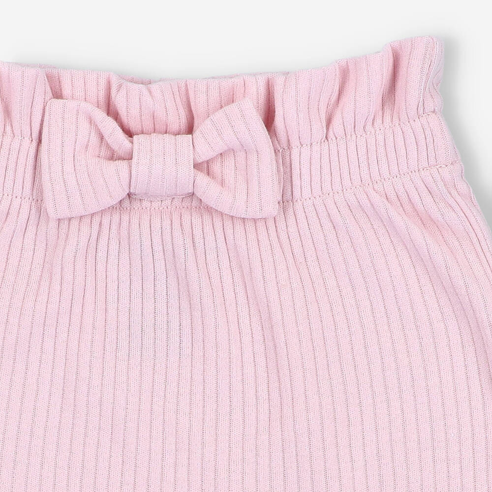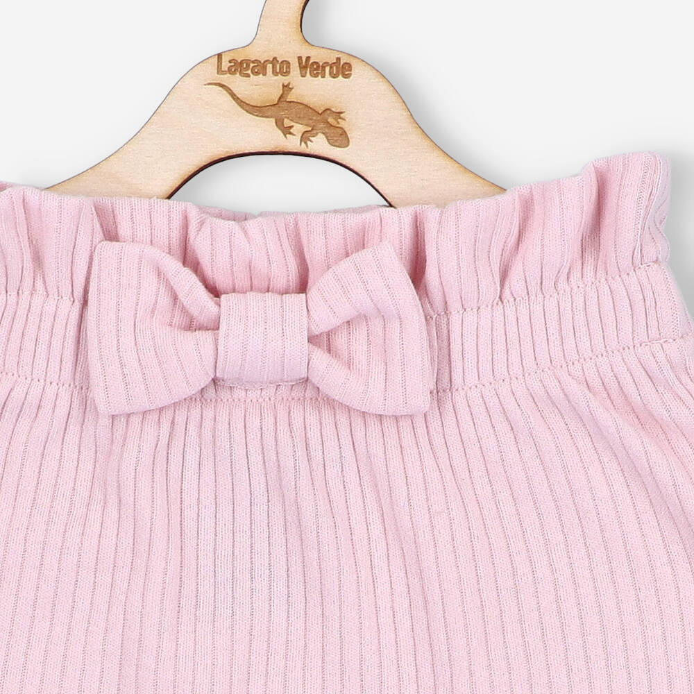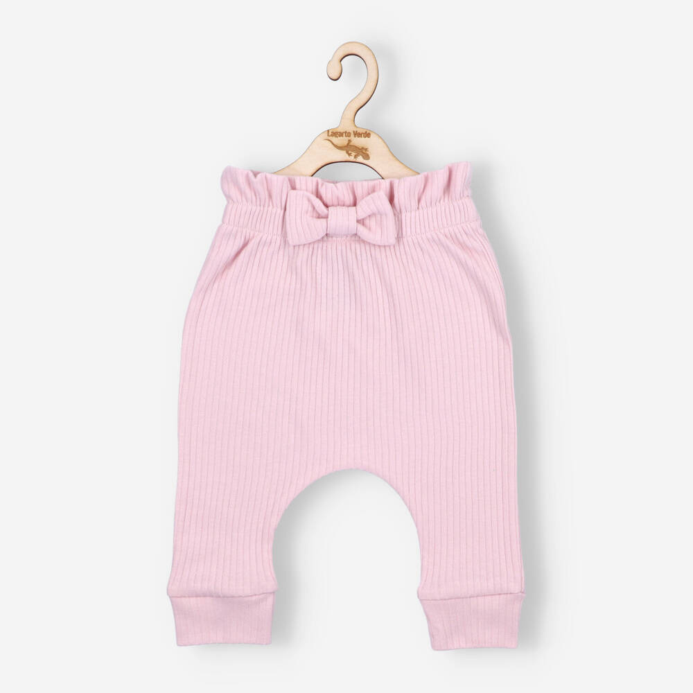 KAR-0023/JR0 Spodnie z dzianiny prążkowej z kokardą Lagarto Verde - różowy