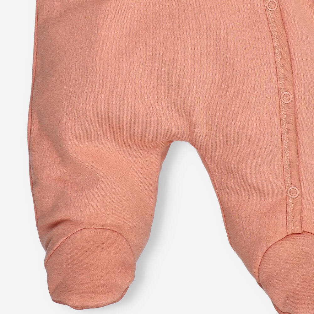 Dwuwarstwowy kombinezon uszyty z miękkiej i przyjemnej w dotyku bawełny organicznej.