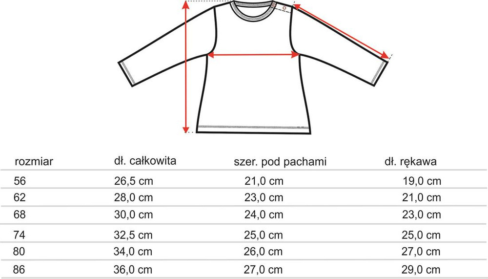 Bluzka z długim rękawem wykonana z bawełny prążkowanej. Ubranko posiada praktyczne napy na ramieniu ułatwiające ubieranie.