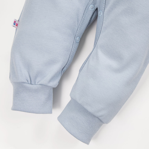 Pajac niemowlęcy bez stópek uszyty z miękkiej i przyjemnej w dotyku dzianiny bawełnianej.