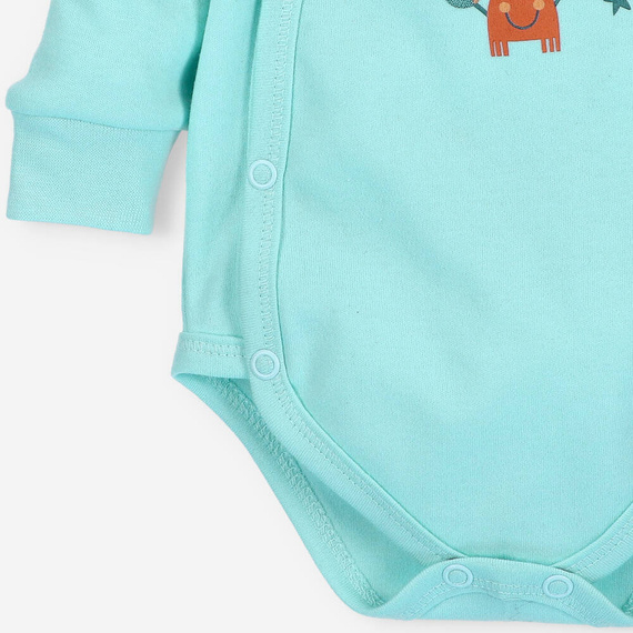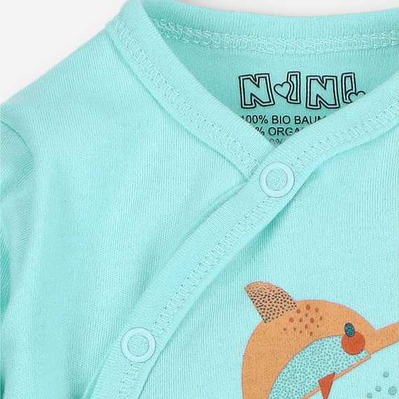 ABN-4088/BŁĘ Morskie Zwierzątka Body kopertowe z bawełny organicznej Nini błękitny