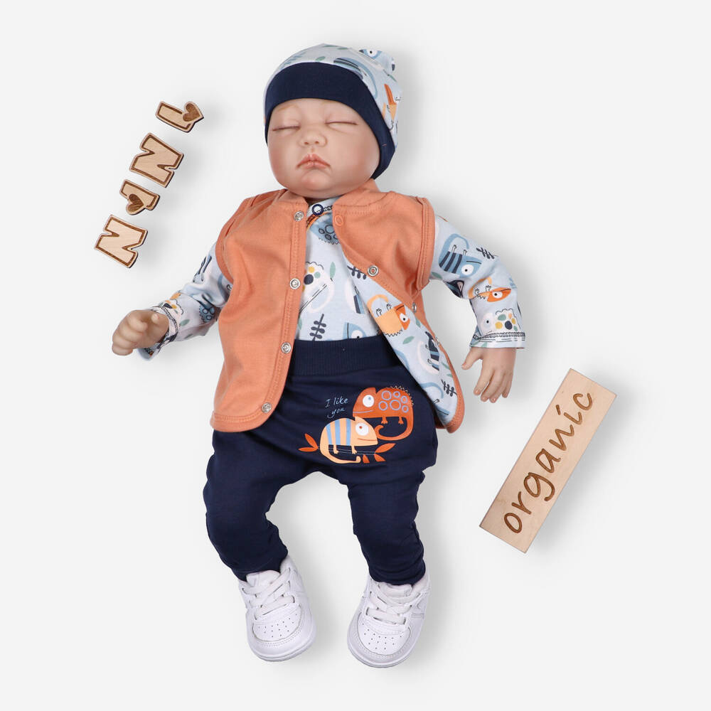 Dwuwarstwowa kamizelka uszyta z miękkiej i przyjemnej w dotyku bawełny organicznej. Krój umożliwia całkowite rozpięcie, przez co ubranko jest funkcjonalne i wygodne. Bezniklowe napy i delikatne, miękkie lamówki to dodatkowe atuty ubranka. Marka NINI jako jedna z niewielu w Polsce posiada międzynarodowy certyfikat OEKO-TEX STANDARD 100, który potwierdza, że jej wyroby spełniają najwyższe normy bezpieczeństwa dla niemowląt Kupując ubranka NINI dbasz o środowisko oraz bezpieczeństwo i zdrowie swoich dzieci.