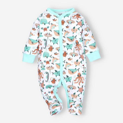 ABN-4093/MOR Morskie Zwierzątka Pajacyk z bawełny dla chłopca Nini druk
