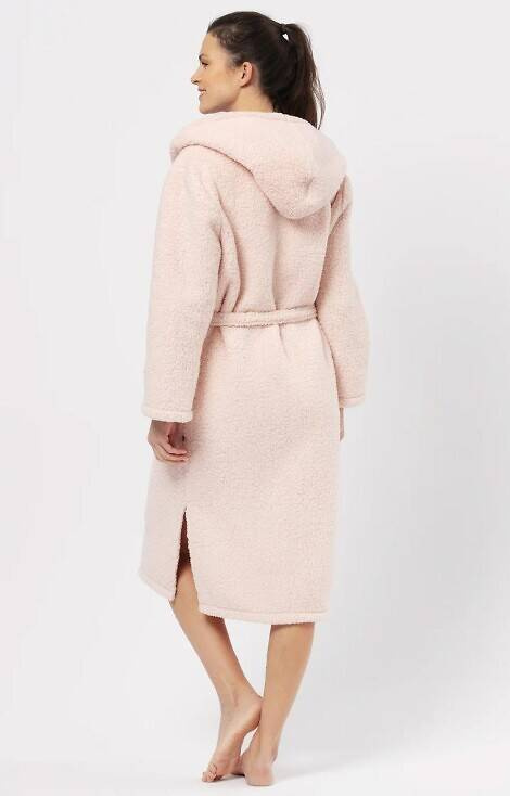Długi szlafrok damski z kapturem wykonany z miękkiej dzianiny typu soft