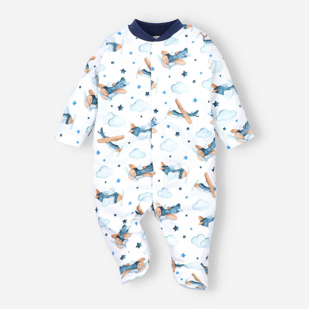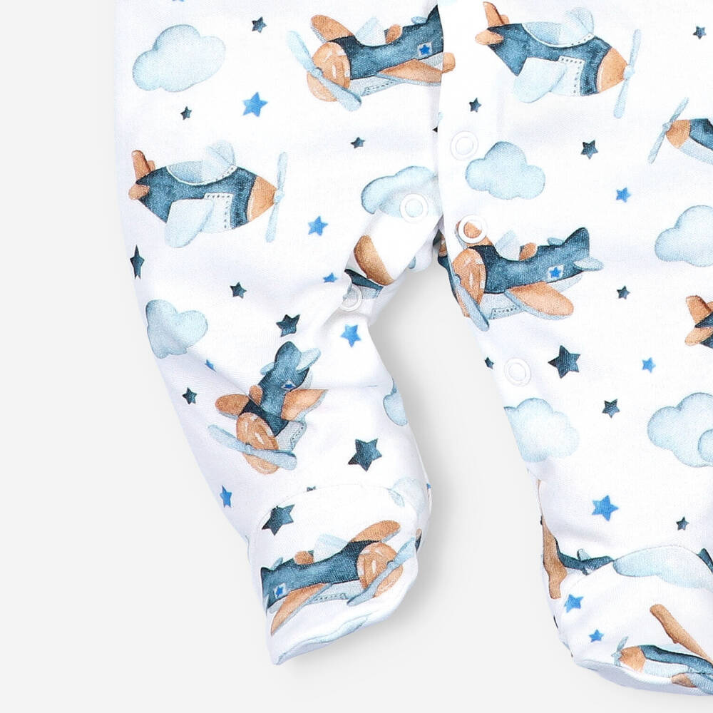 ABN-2665/SAM Samoloty Pajacyk z bawełny organiczej Nini druk