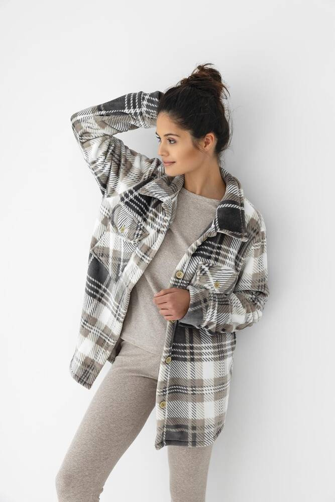 Wygodny, ciepła koszula damska wykonana z miękkiej, puszystej dzianiny typu soft.
