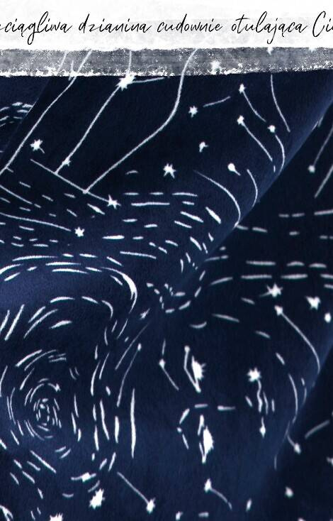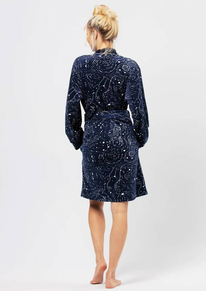 Krótki szlafrok damski wykonany z miękkiej dzianiny o wzorze rozgwieżdżonego nieba.