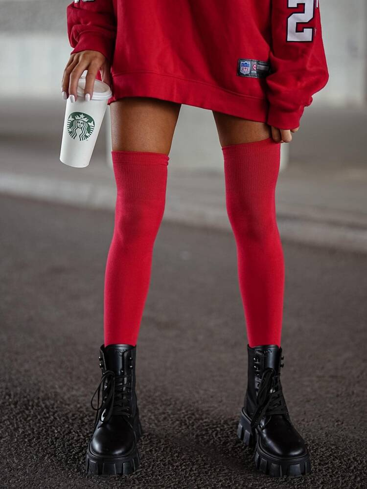 Opinie o 0293 Gładkie Zakolanówki damskie Milena czerwony