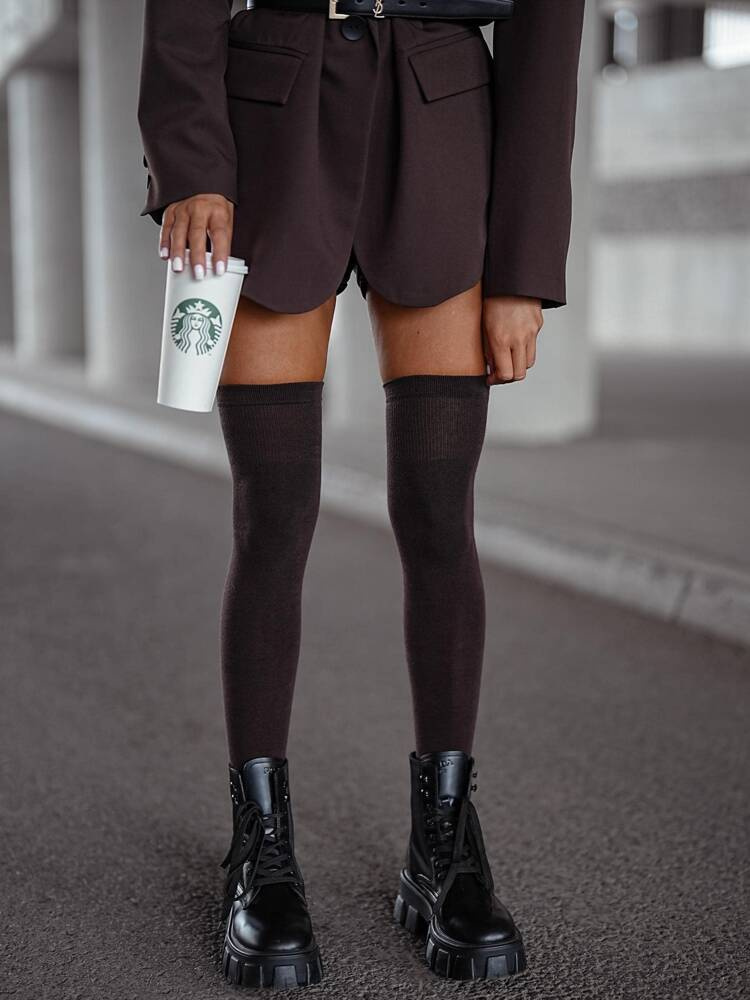 0293 Gładkie Zakolanówki damskie Milena brązowy