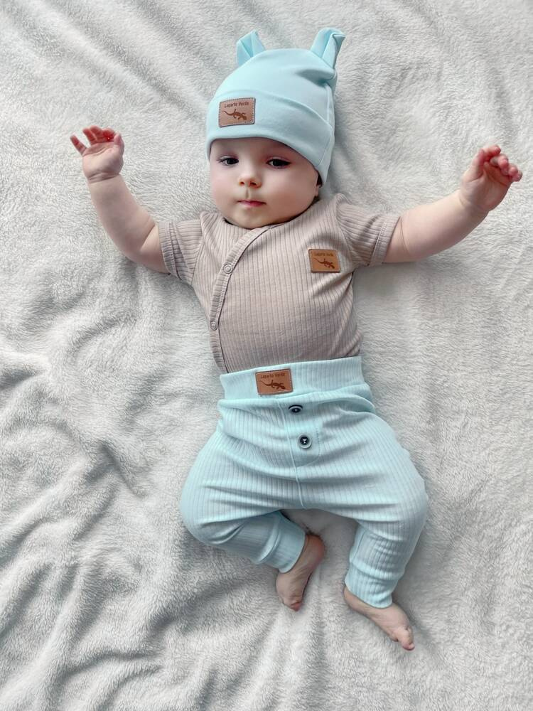 Dwuwarstwowa czapka niemowlęca gładka Lagarto Verde - niebieski