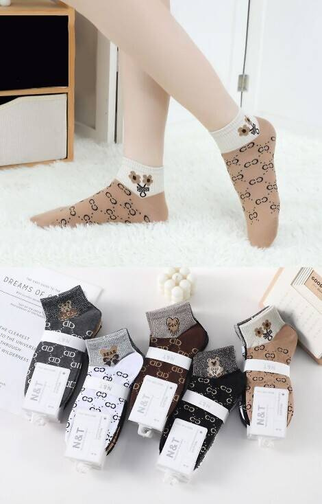 Skarpety damskie zdobione wzorem, wykonane z wysokiej jakości bawełny.