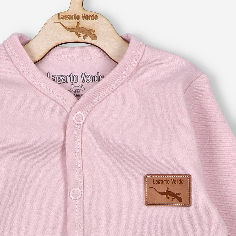 Pajac niemowlęcy uszyty w Polsce z bardzo przyjemnej w dotyku bawełny. Bezniklowe napy i delikatne, miękkie lamówki to dodatkowe atuty ubranka.