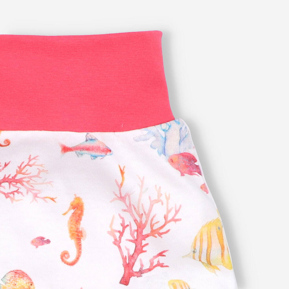 Spodenki dla dziewczynki. W pasie ściągacz z miękką gumą, a nogawki zakończone miękkim ściągaczem. Ubranko idealne na spacer jak i podczas zabawy w domu. Marka NINI jako jedna z niewielu w Polsce posiada międzynarodowy certyfikat OEKO-TEX STANDARD 100, który potwierdza, że jej wyroby spełniają najwyższe normy bezpieczeństwa dla niemowląt Kupując ubranka NINI dbasz o środowisko oraz bezpieczeństwo i zdrowie swoich dzieci.