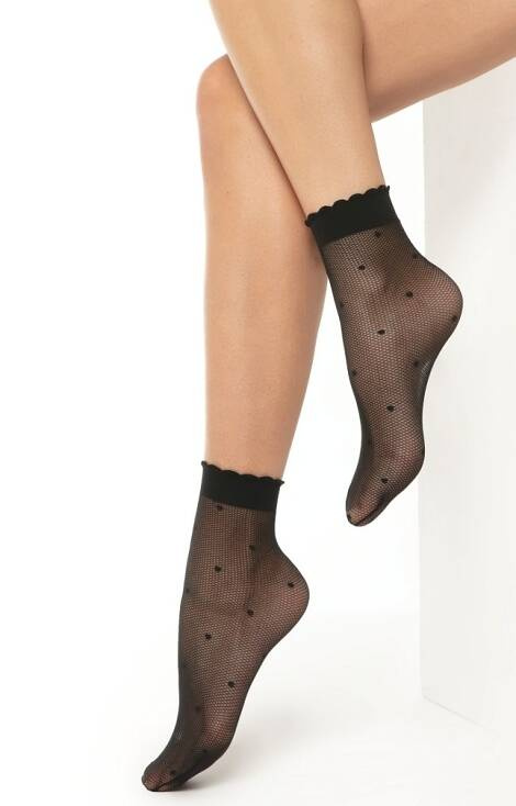 Cienkie skarpetki o grubości 20 den, z ozdobną delikatną falbanką na ściągaczu