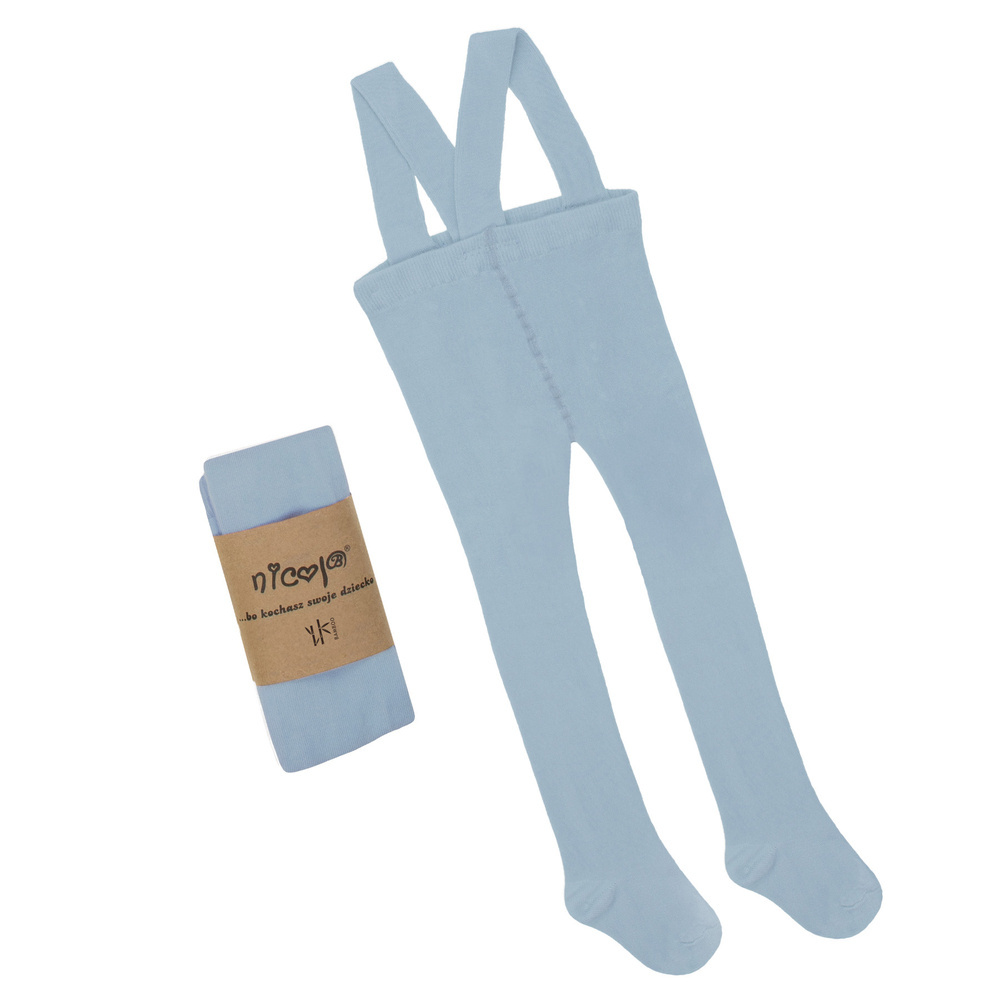 Miękkie i wygodne rajstopy na szelkach. Dzięki wbudowanym szelką nie spadają i nie trzeba ich podciągać. Podtrzymują pieluchę dziecka, utrzymując ją w jednym miejscu. Idealne na chłodniejsze dni. Wysokogatunkowy materiał, z którego zostały wykonane, jest przyjemny w dotyku, nie podrażnia wrażliwej skóry dziecka. Delikatna guma nie uciska brzuszka maluszka, a szerokie szelki nie wbijają się w ramiona.