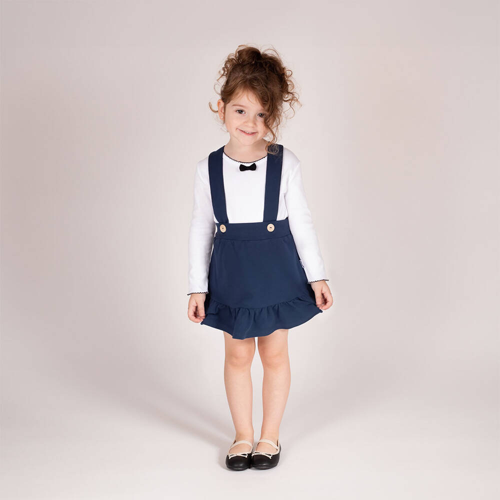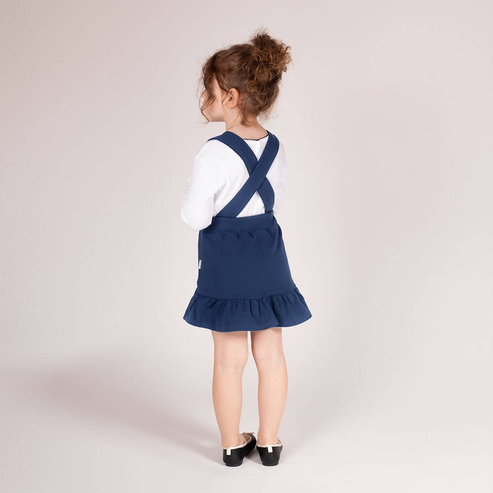 Zapytaj o produktSpódniczka dziewczęca z bawełny. Idealna na wiosnę i lato. W pasie wszyta jest gumka, która utrzymuje ubranko w odpowiednim miejscu, ale nie uciska w brzuszek. Dekoracyjne szelki zapinane na drewniane guziki-można ułożyć "na krzyż" lub prosto. Spódniczka jest delikatnie rozkloszowana, zakończona na dole falbanką. Luźny fason nie krępuje ruchów dziecka i zapewnia komfort noszenia. Spódniczkę można dowolnie łączyć z innymi ubrankami, tworząc unikatowe stylizacje.