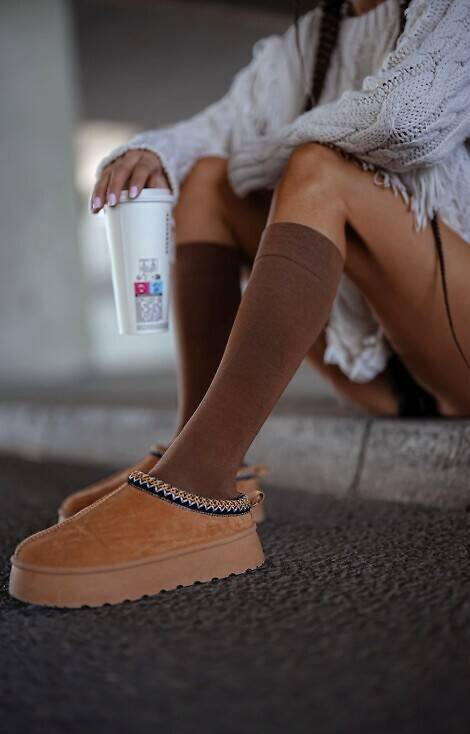 0248-001 Gładkie Podkolanówki damskie Milena - karmelowe