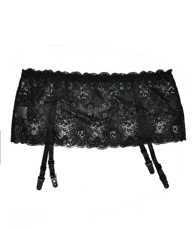 Wysoki pas do pończoch, wykonany w całości z szerokiej koronki otuli kobiece biodra, podkreślając ich krągłość. Pas posiada regulowane troczki pozwalające na jeszcze lepsze wymodelowanie i podkreślenie autów kobiecej sylwetki. Wzór kwiatowy.