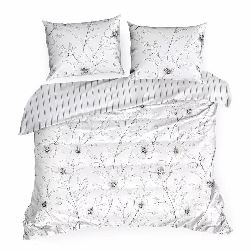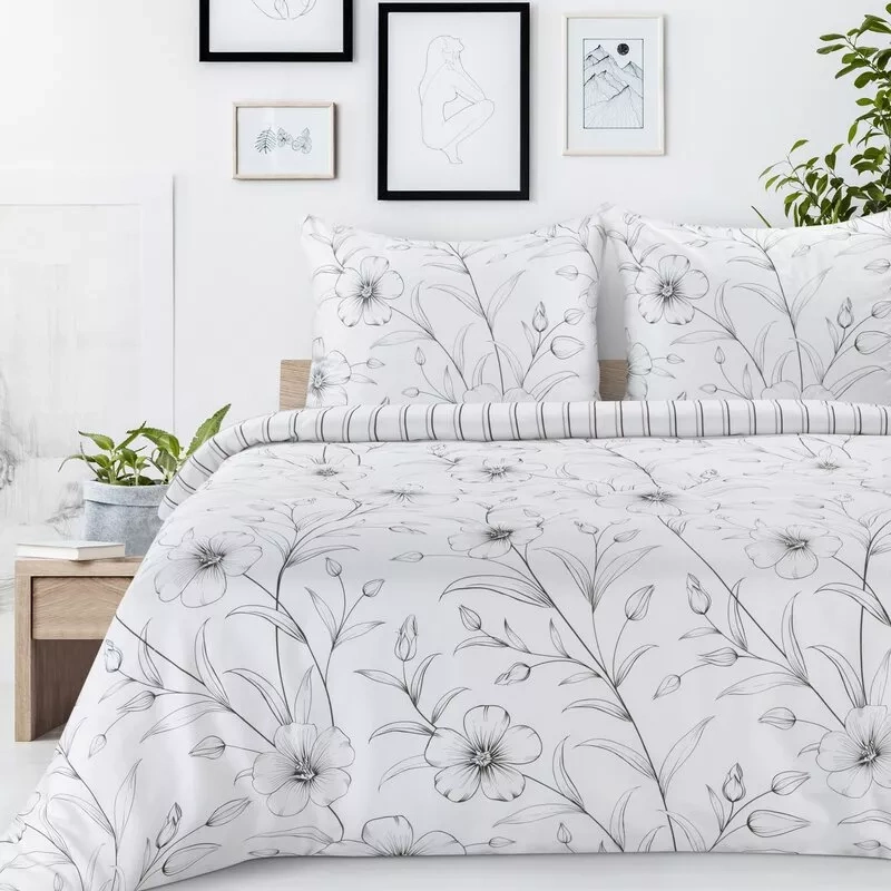 Spring 33 Kwiaty pościel satynowa Eurofirany biały/czarny