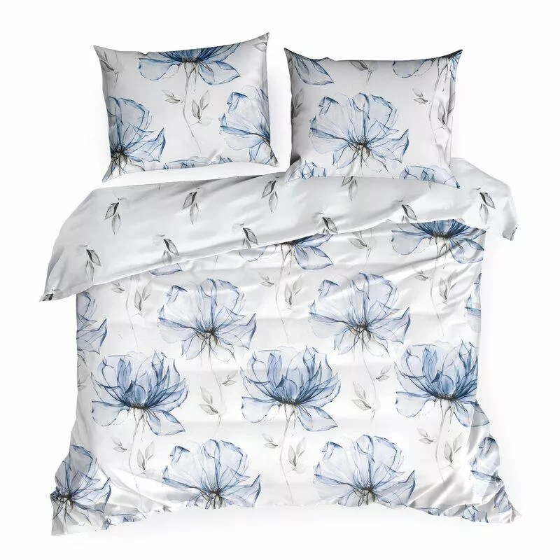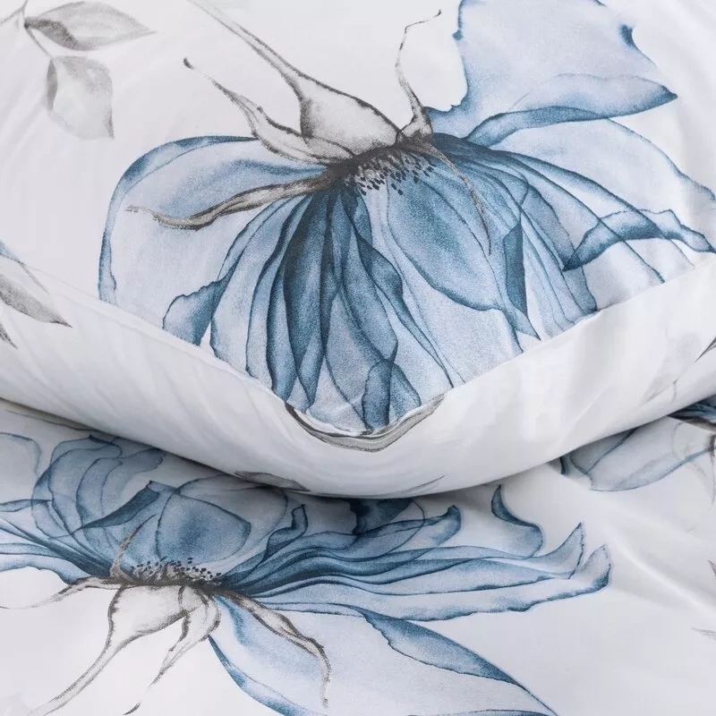 Spring 34 Kwiaty pościel satynowa Eurofirany biały/niebieski