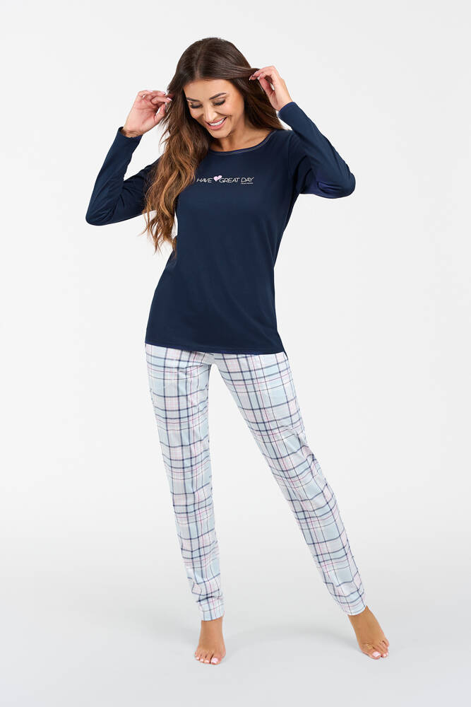 Glamour Piżama Damska długi rękaw i długie spodnie Italian Fashion - granatowy/druk