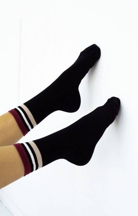 1313-001 Prążek z paskami Skarpety damskie Milena czarny-bordowy 02