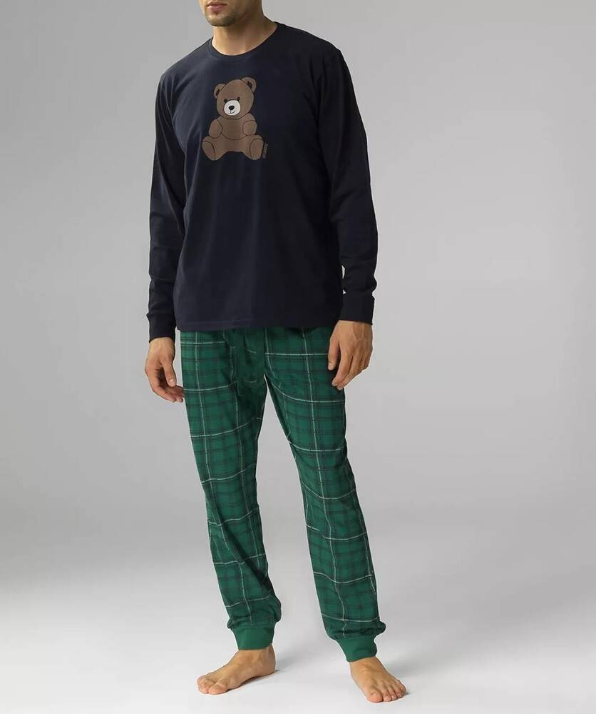 NMP-377 Piżama męska długi rękaw, Atlantic- granatowy zielony