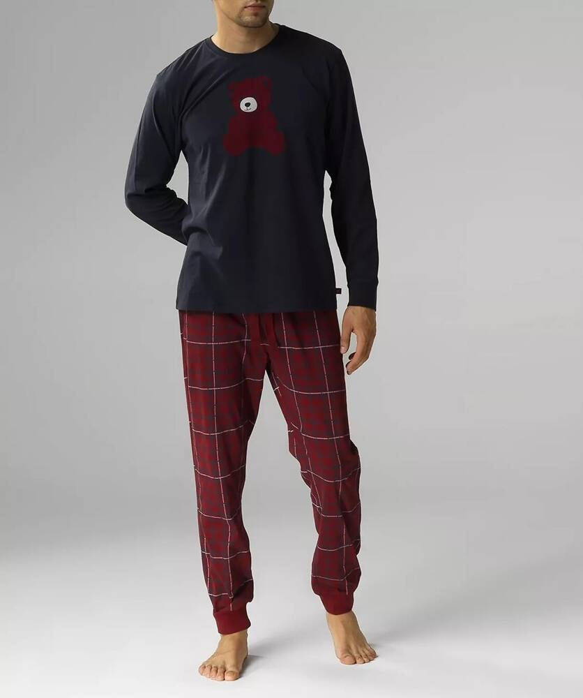 NMP-377 Piżama męska długi rękaw, Atlantic- granatowy burgundowy
