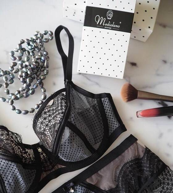 Biustonosz zachwyca finezyjnym połączeniem materiałów i detali. Miseczki w dolnej części wykonane są z delikatnego tiulu, który został pokryty elegancką, szarą siateczką. Obwód biustonosza, podobnie jak miseczki, również wykonany jest z tiulu obszytego siatką, co zapewnia lekkość i przewiewność. Brak bocznych fiszbin podnosi komfort noszenia. Przeszycia zostały dyskretnie przykryte czarnymi taśmami, które dodają biustonoszowi eleganckiego wykończenia. Górna linia miseczek jest ozdobiona delikatną czarną koronką, co dodaje całości zmysłowego uroku.