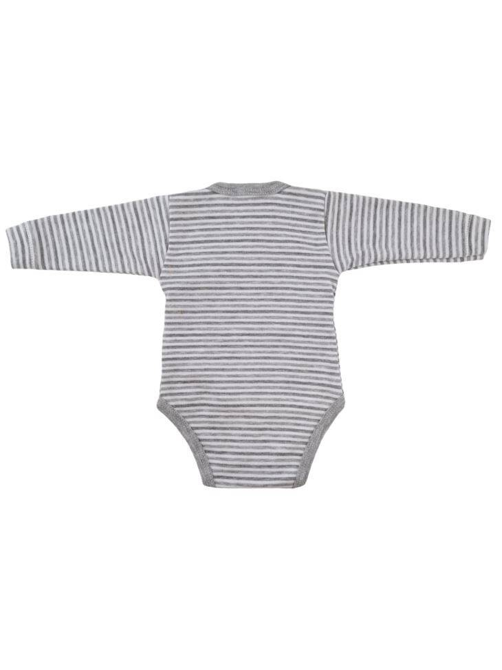Body z 100% bawełny, ozdobione oryginalnym wzorem w paski. Posiadają wygodne rozpięcie na całej długości i w kroku, ułatwiające zakładanie. Najwyższej jakości materiał gwarantuje wygodę i swobodne ruchy niemowlaka oraz odpowiednią termoregulację. Zapinane na bezniklowe napki.