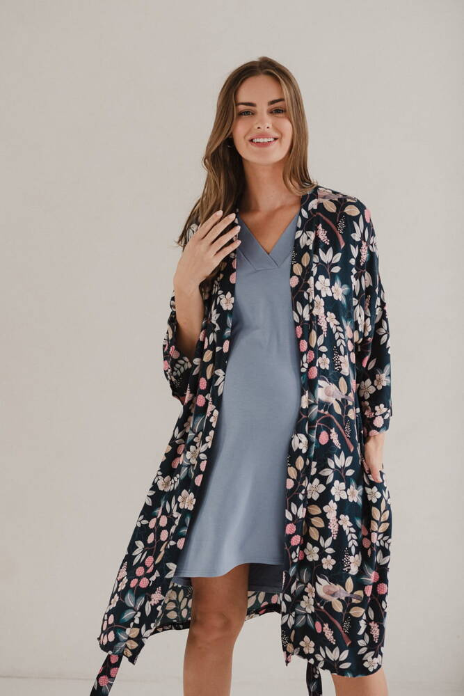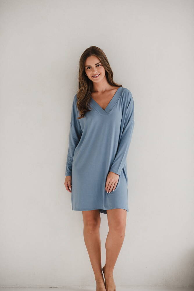 Moon bambusowa koszula nocna ciążowa i do karmienia długi rękaw Milk&Love błękitny