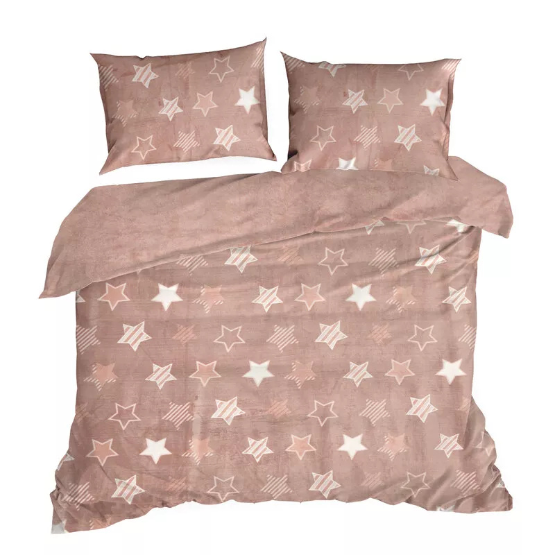Flano 4 pościel welurowa gwiazdki Eurofirany pudrowy róż
