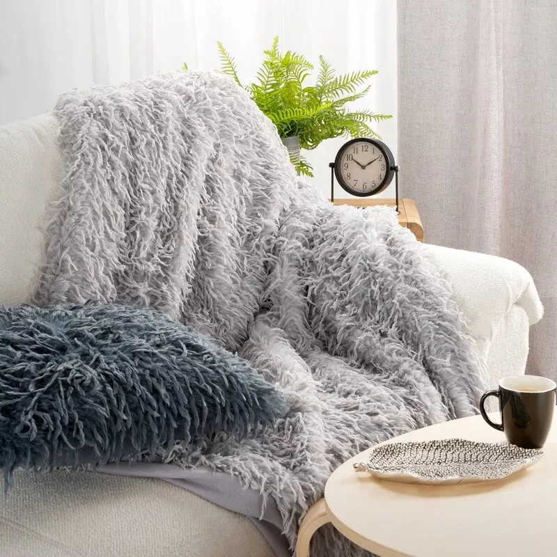 Adore Koc narzuta włochacz futrzak Eurofirany srebrny