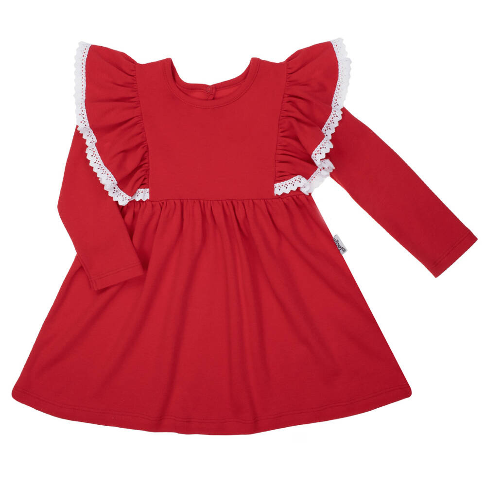 Zapytaj o produktBawełniana sukienka dla dziewczynki w kolorze czerwonym. Sukienka na długi rękaw, który ozdobiony jest motylkami. Zapinana na plecach na bezniklowego napa w tzw. łezkę. Produkt posiada certyfikat Oeko-Tex Standard 100 Tekstylia godne zaufania.