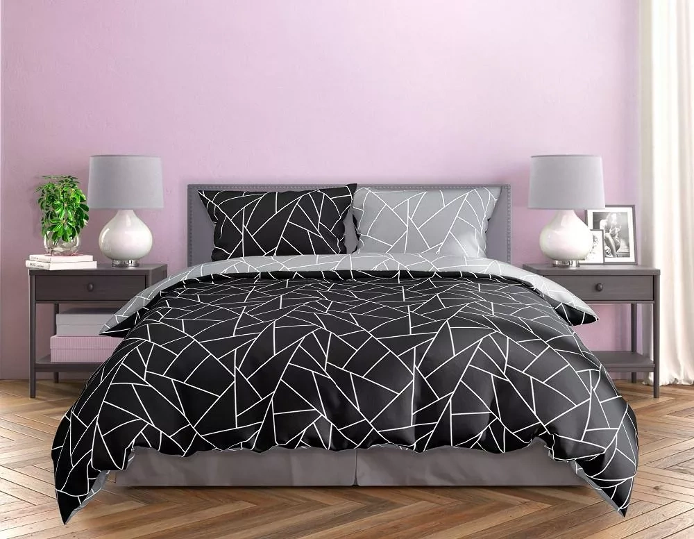 Milargo Verde 007 Pościel satynowa geometria Faro czarny