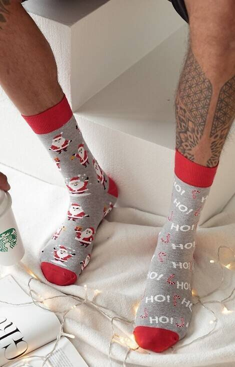 Skarpetki męskie z motywem świątecznym wykonane z wysokiej jakości bawełny.