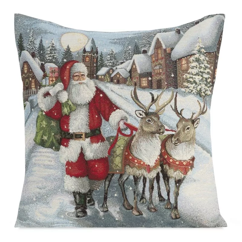 Chp 6130 Poszewka świąteczna gobelinowa Mikołaj Renifery Eurofirany szary