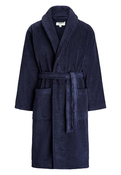 Klasyczny szalowy szlafrok męski. Uszyty z miłej, miękkiej dzianiny soft. Wiązany w pasie, na biodrach wygodne kieszenie.