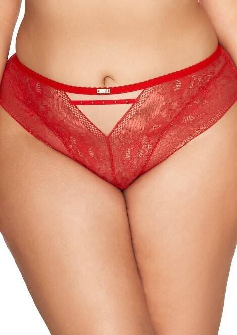 Figi damskie o pełnym kroju . Wykonane z efektownej koronki. Nogawki zakończone na płasko , bez obszyć.