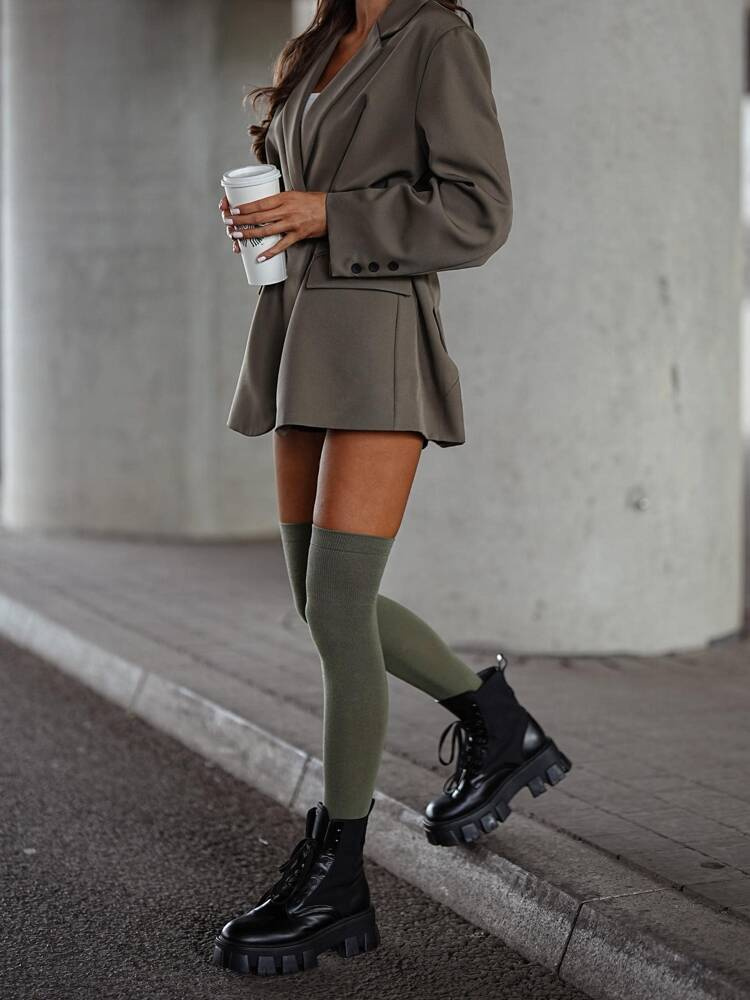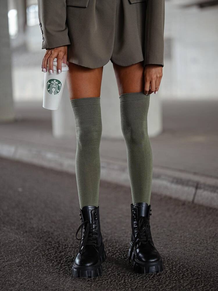0293 Gładkie Zakolanówki damskie Milena - oliwkowy