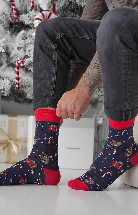 Skarpetki męskie z motywem świątecznym, wykonane z wysokiej jakości bawełny.