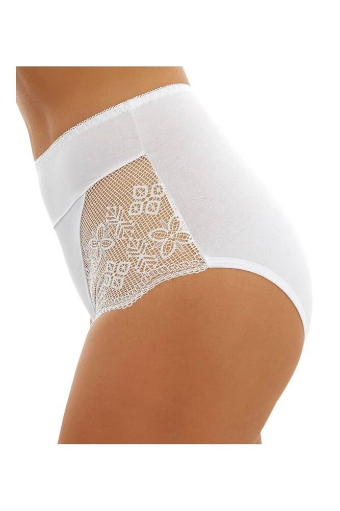 Zabudowane, wysokie figi damskie wykonane z gładkiej bawełny z dodatkiem efektownej koronki