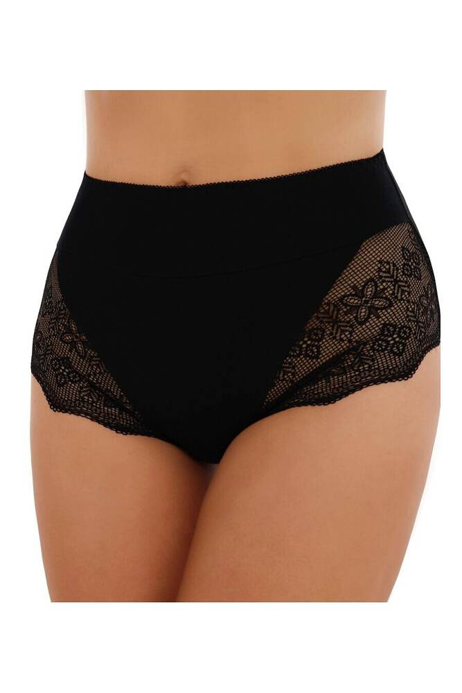 Zabudowane, wysokie figi damskie wykonane z gładkiej bawełny z dodatkiem efektownej koronki
