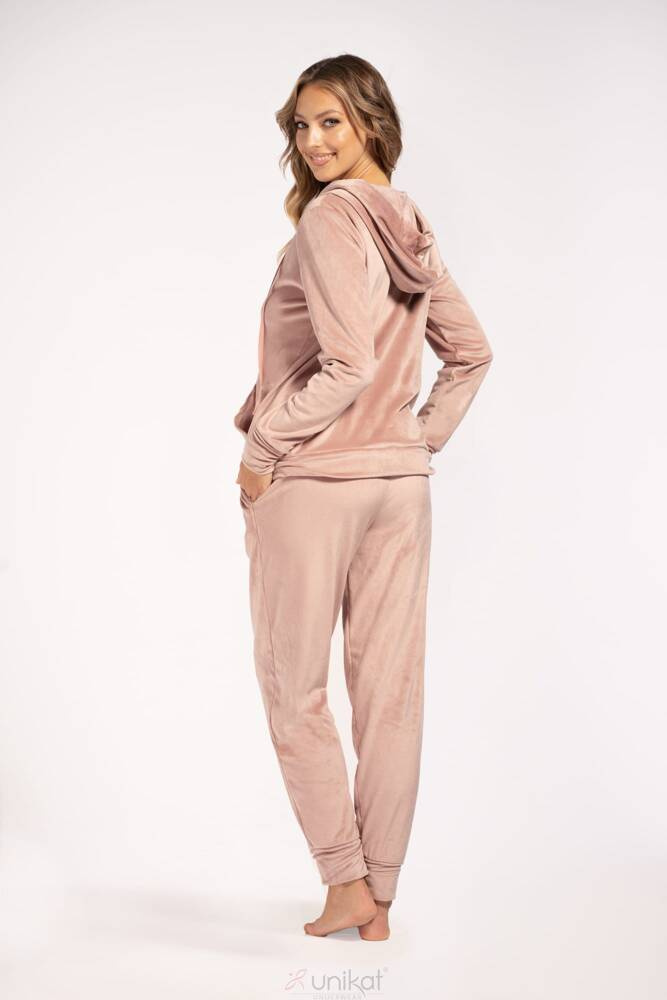 Komplet, która składa się z bluzy i spodni. Idealny zarówno do domowego leniuchowania i na wyjście na miasto. Bluza jest luźna i dzięki temu bardzo wygodna. Spodnie mają luźny krój a przy tym wpisują się w najmodniejsze trendy. Materiał jest gładki i wytrzymały. Aby komplet na długo zachował swój świetny stan, należy go prać według zaleceń na metce.